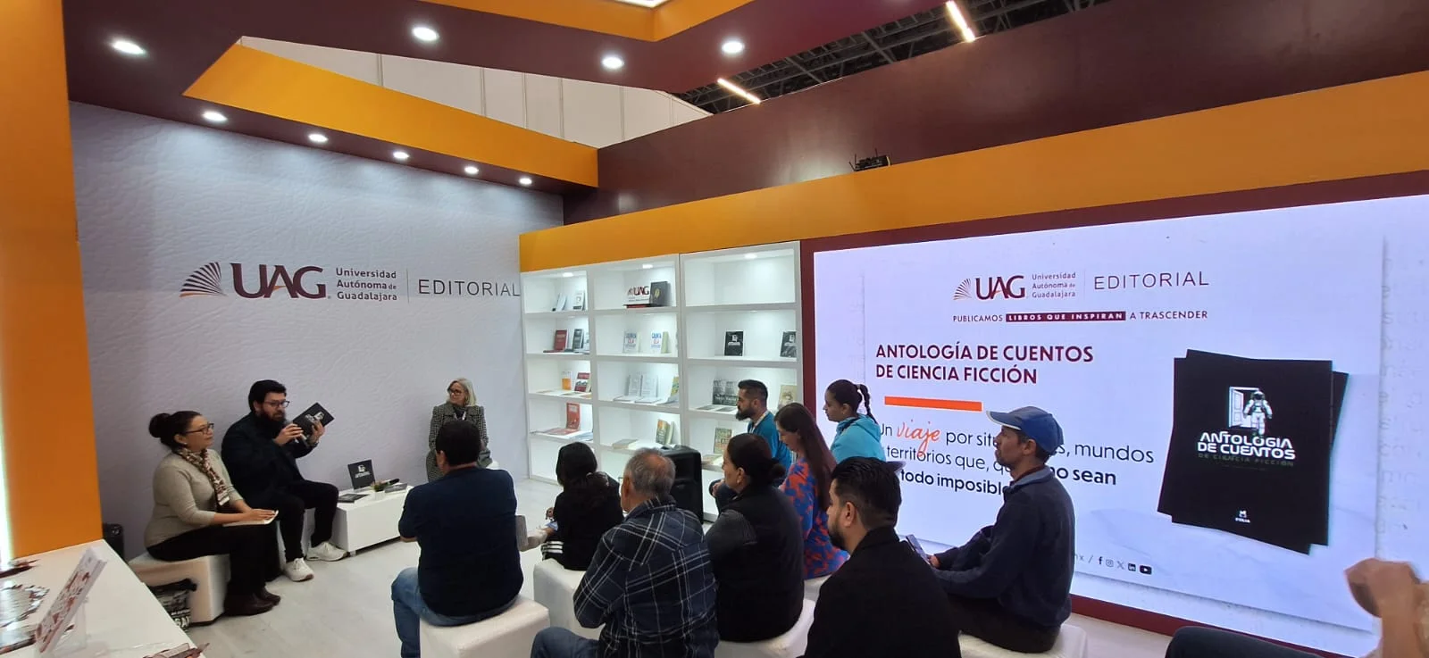 Como resultado del Primer Concurso de Ciencia Ficción convocado por UAG Editorial bajo su sello Folia, invitación nacional que recibió 201 cuentos de autores originarios de 29 estados del país, en la reciente edición de la Feria Internacional del Libro de Guadalajara se realizaron sendas charlas con cuatro de los 24 autores seleccionados para formar parte de la Antología de cuentos de ciencia ficción, en el stand de esta casa editora.