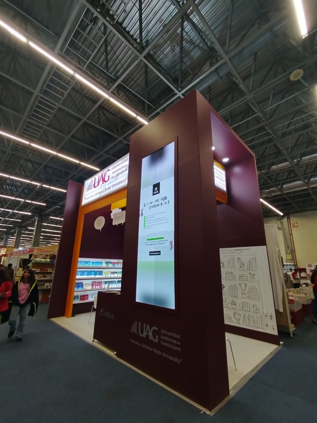 El espacio se ubicó en el stand L39 del área de nacional y contó con una gran pantalla para dar a conocer algunas piezas del catálogo de Folia e información general de la institución. Fue revestido también con una serie de globos flotantes con frases que invitaban a la lectura, un mural de interacción abierta para el público, así como libreros con ejemplares de venta al público.
